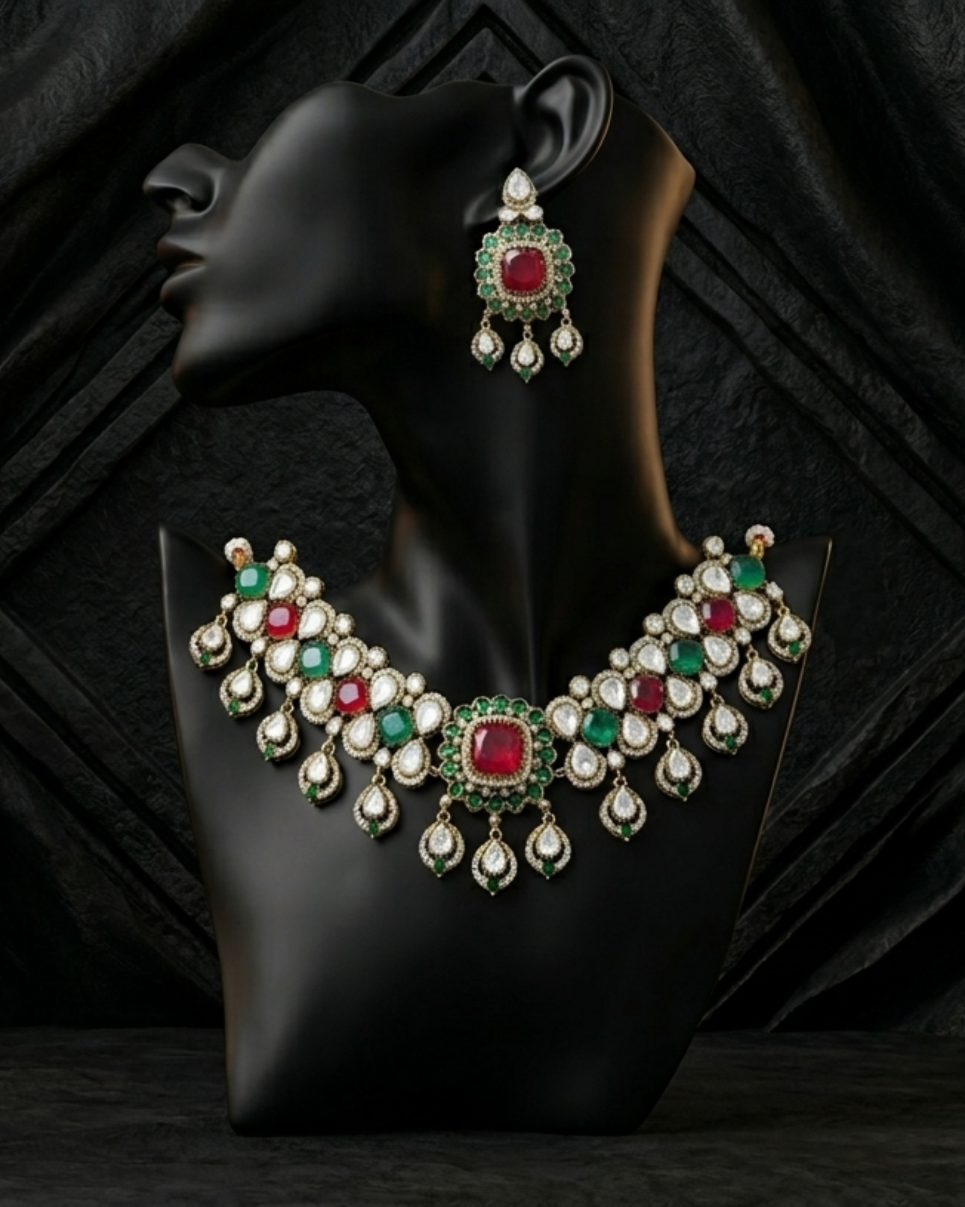 Store in a soft pouch away from moisture. Avoid contact with perfume and water to preserve the Kundan setting and metal finish.