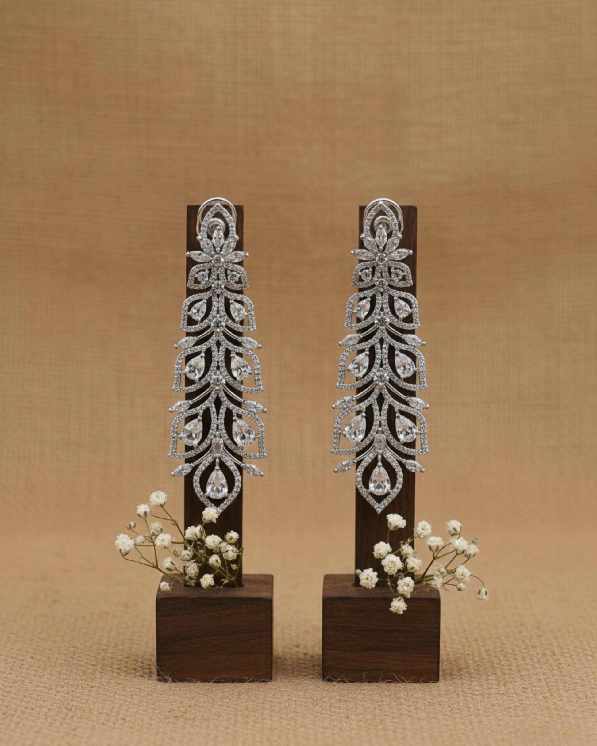 The Riva Elegant Danglers are designed to add effortless charm and refined sparkle to your look. Crafted with beautifully set stones that offer a radiant finish, these earrings feature a graceful drop silhouette that enhances both traditional and contemporary outfits. Lightweight yet striking, they are perfect for festive occasions, celebrations, or elegant evenings, making them a versatile addition to your jewellery collection.