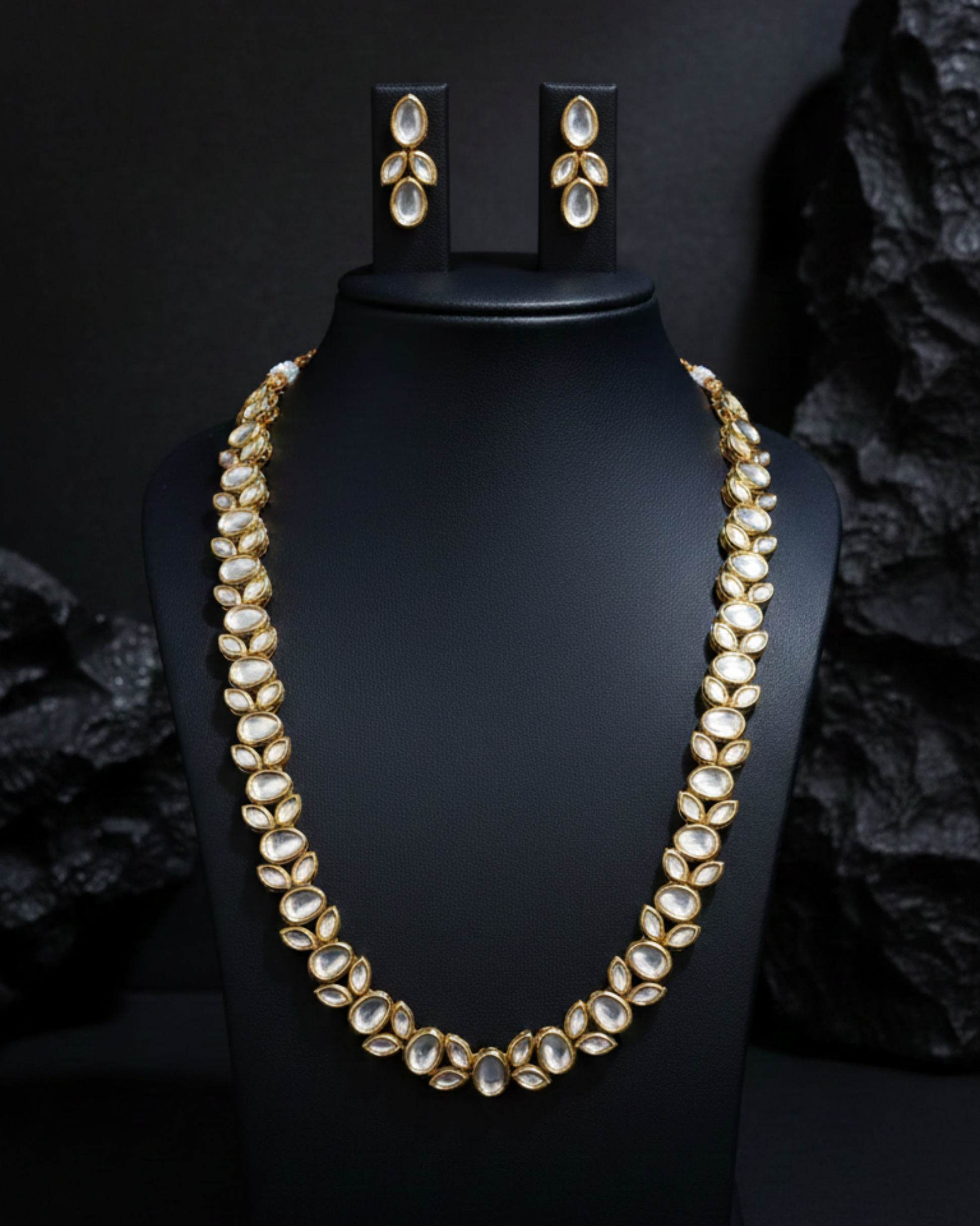 The Tara Kundan Grace Set showcases exquisite meenakari kundan craftsmanship, blending traditional artistry with timeless elegance. The necklace features delicately set kundan stones arranged in a graceful pattern, enhanced with intricate meenakari detailing that adds depth and character to the design. Paired with matching earrings, this set is perfect for weddings, festive celebrations, and special occasions. Its refined finish and classic appeal make it a versatile addition to your jewellery collection, effortlessly complementing both traditional and contemporary ethnic ensembles.
